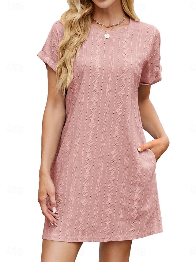 Women's Mini Dress Casual Dress T Shirt Dress Tee Dress Stylish Basic Casual Vacation Daily Regular Fit Plain Short Sleeve Crew Neck Pink Sky Blue Orange Gray Summer 6