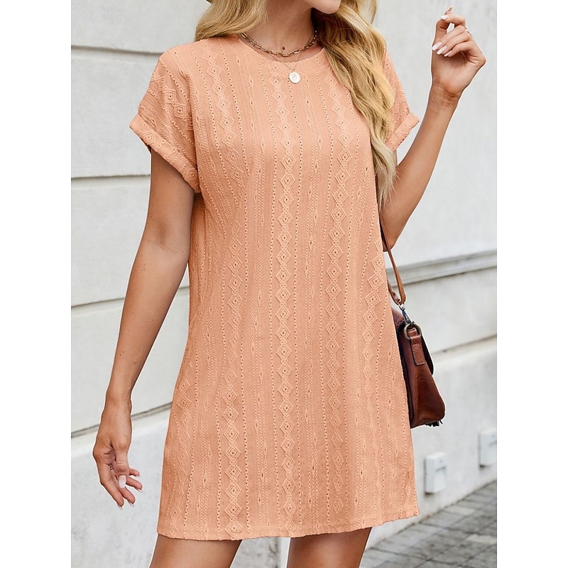 Women's Mini Dress Casual Dress T Shirt Dress Tee Dress Stylish Basic Casual Vacation Daily Regular Fit Plain Short Sleeve Crew Neck Pink Sky Blue Orange Gray Summer 9