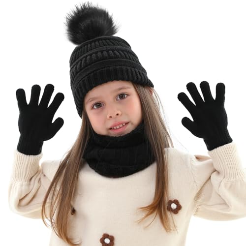 • Kids Winter Hat Gloves Scarf Set: The stylish kids winter hat scarf gloves set is designed for boys and girls; The thick soft hat, gloves and fleece lined neck warmer is great for cold weather