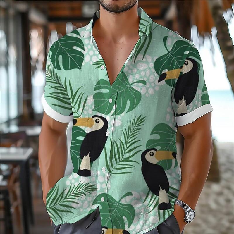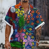 HOT ! Men's Tropical Parrot Shirt Summer Hawaiian Shirt Aloha Shirt Short Sleeve Shirt Turndown Vacation Hawaiian Resort Style Outdoor Vacation Beach White Blue Green S M L