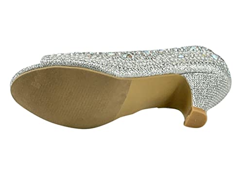 Girls Fashion Kitten Heels - Glittering Rhinestone Dress Shoes for Kids - Peep Toe Low Pump Sandals for Fancy Events - Great for Weddings, Pageants, Church, and More 6