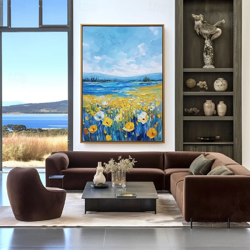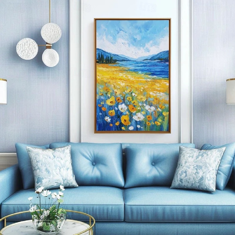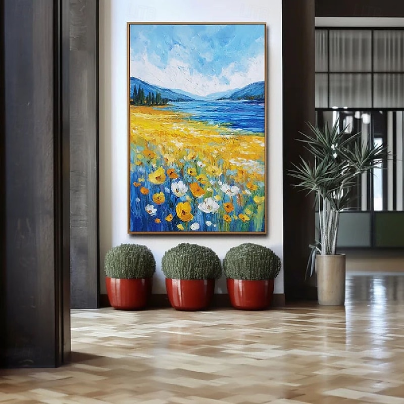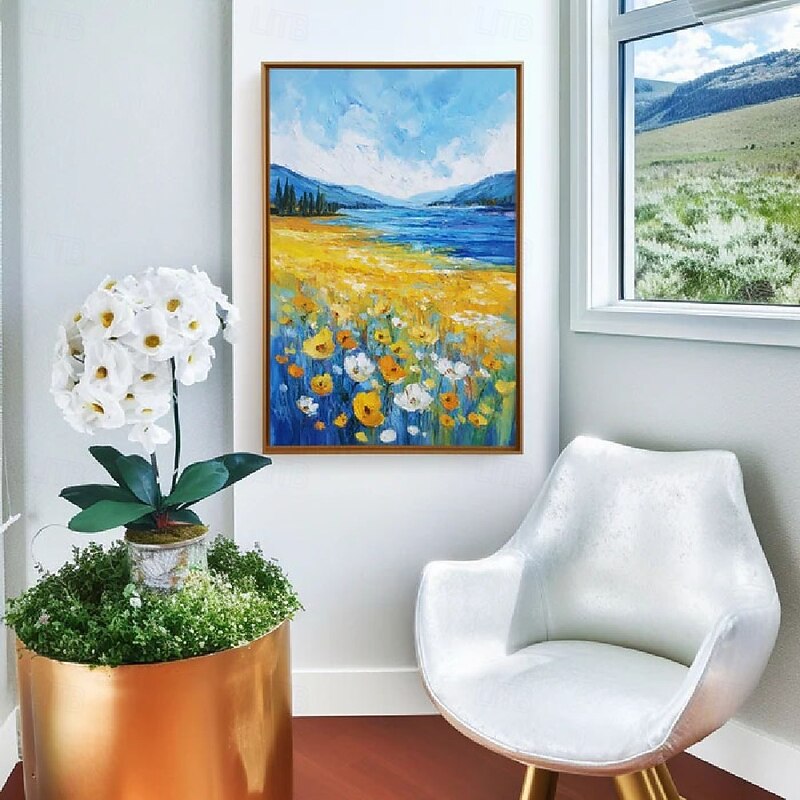 $116.99 - Handmade 3D Oil Painting Vibrant Floral Landscape with Sunlit Meadow Blooming Wildflowers and Mountain Lake Under Clear Blue Sky-High Quality Detailed Brushstrokes Create Realistic 3D Painting 2025. Shop for cheap Abstract Paintings online? Buy at lightinthebox.com on sale today!