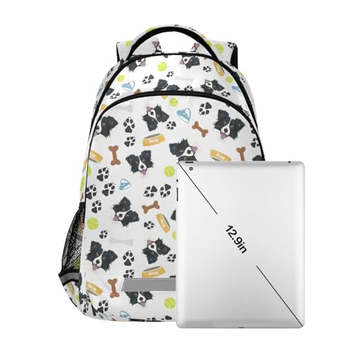 Border Collie Dog Backpack for Girls Boys School Bookbags Elementary Daypack Lightweight Waterproof Laptop Large Capacity Bag for kids 6