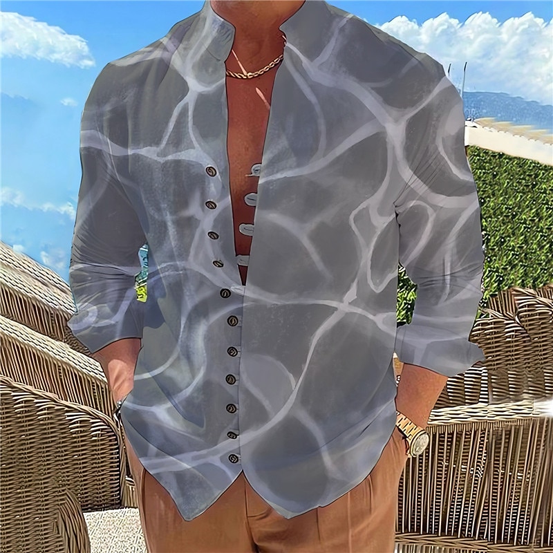 Highlights [Fabric] : Crafted from a premium polyester blend, this men's shirt is lightweight and breathable, providing comfort and easy mobility for all-day wear. The micro-elastic fabric ensures a relaxed yet polished fit that accommodates various activities and settings. [Fit] : The shirt boasts a regular fit, striking a balance between tailored elegance and casual comfort. It offers ample room for movement while maintaining a sophisticated silhouette that complements most body types. [Design Highlights] : This fashionable shirt features a vibrant gradient waves and seascape pattern, evoking the serene beauty of ocean landscapes. The print is further enhanced by a stand collar and a classic long sleeve design. The button-up front adds versatility, allowing you to adjust the style from casual to more formal as needed. [Occasions] : Perfect for vacation, street outings, daily casual wear, and outdoor adventures, this shirt is a versatile addition to any wardrobe. Whether you're heading out for a leisurely walk or meeting friends for a laid-back gathering, its stylish design seamlessly adapts to various occasions. [Size Range] : Available in a wide range of sizes from S to 3XL, this shirt caters to different body shapes, ensuring a comfortable and flattering fit for everyone. Perfect for everyday use. first-class materials and excellent craftsmanship ensure long-lasting durability.