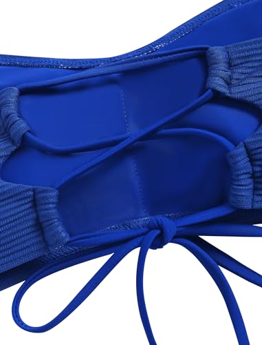 More information about ZAFUL Women's Strapless Twist Bandeau Bikini 2 Piece Swimwear Cheeky Solid Lace up Bathing Suits