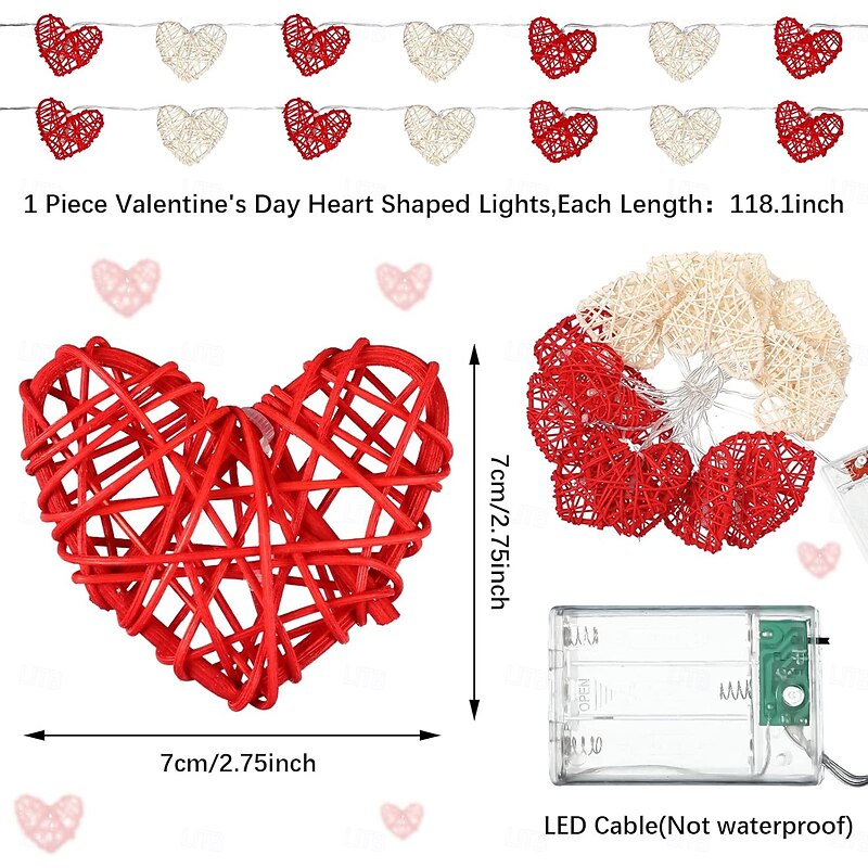 $15.99 - Valentine's Heart String Lights Vintage Rattan Heart Shaped String Lights1.5m 10LED 3m 20LED Fairy Battery Operated Twinkle Light for Valentine's Day Wedding Indoor Outdoor Bedroom Party Decor 2025. Shop for cheap Battery String Lights online? Buy at lightinthebox.com on sale today!