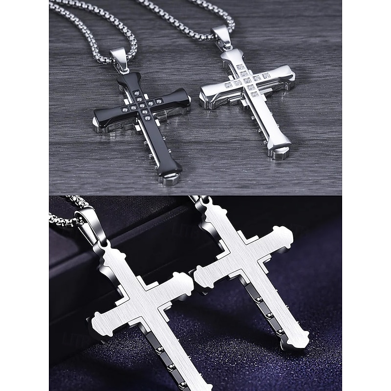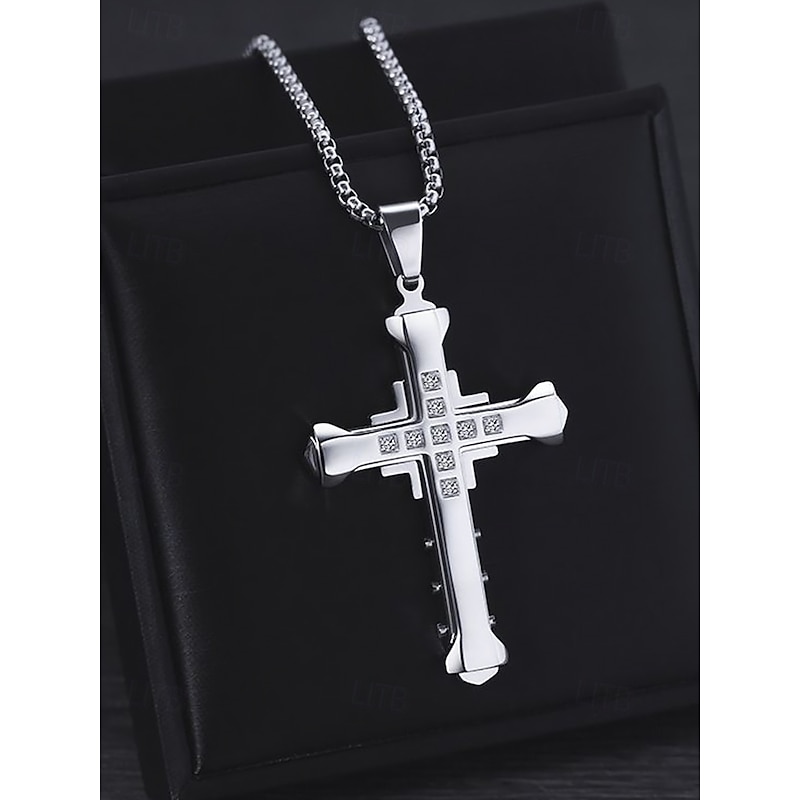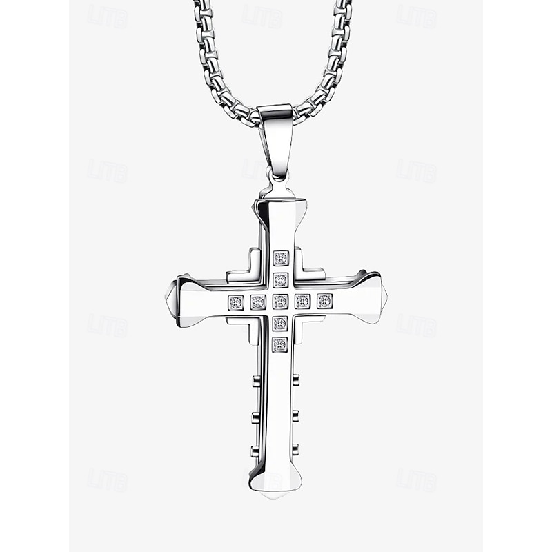 $8.99 - Men's Silver Cross Necklace with Gemstone Accents - Stylish Religious Pendant on Durable Chain for Casual and Formal Wear 2025. Shop for cheap Men's Jewelry online? Buy at lightinthebox.com on sale today!