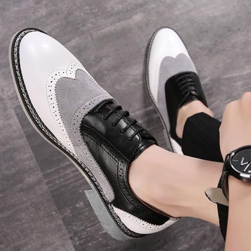 Men's Leather lace-up Brogues Dress Oxford Shoes Classic Wingtip Two Tone Derby Gatsby Prom Shoes Fashion Round Toe Business Formal Leather Shoes 6