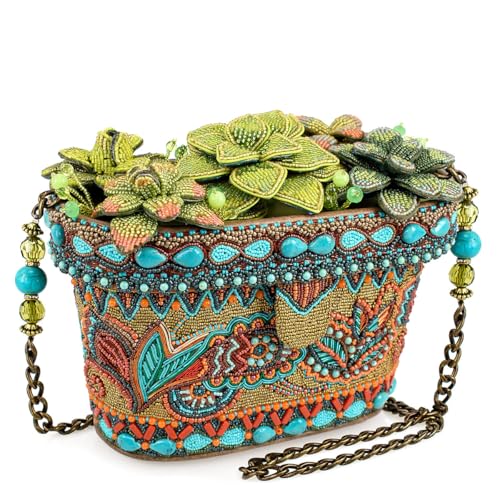 • Mary Frances Succulent Crossbody Handbag: A stunning 3D beaded design featuring lush succulents blooming from a paisley-patterned planter.