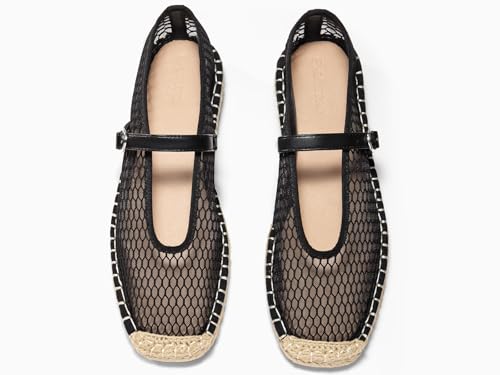 Coutgo Womens Espadrilles Mary Jane Flats Closed Sqaure Toe Mesh Ballet Flats Comfortable Dress Shoes 1