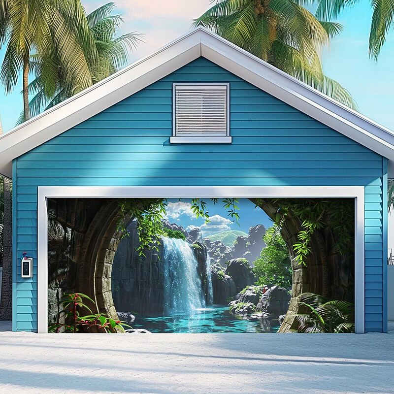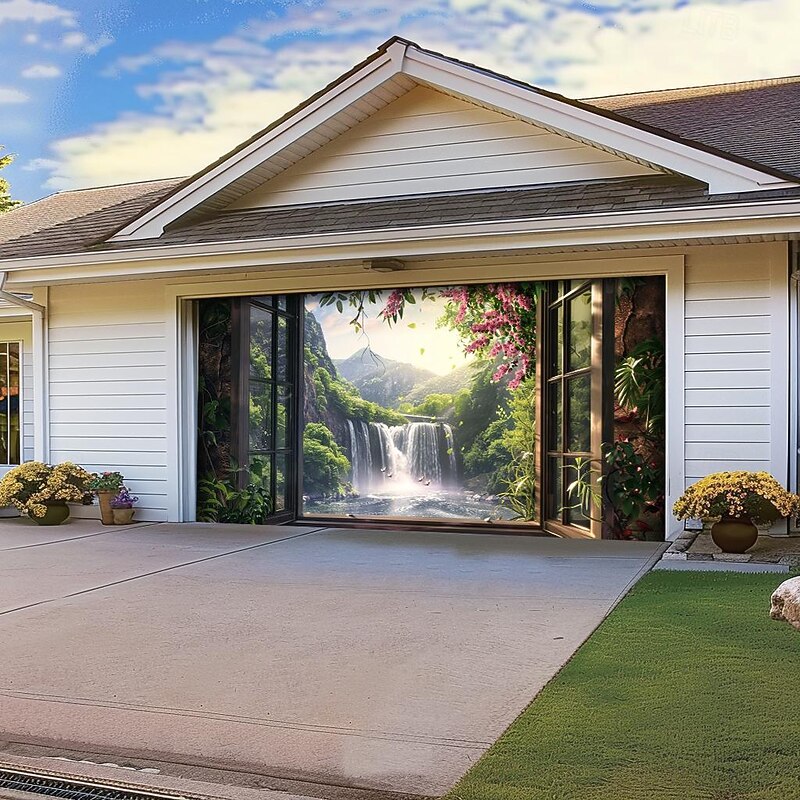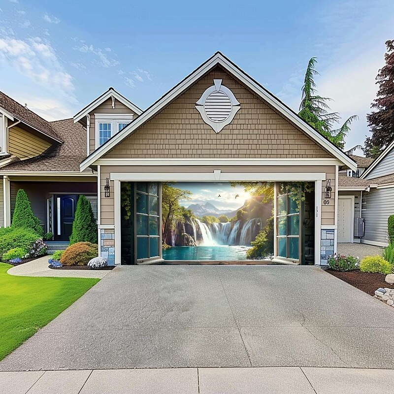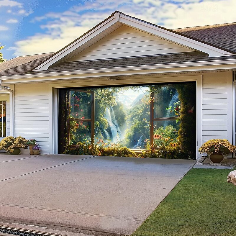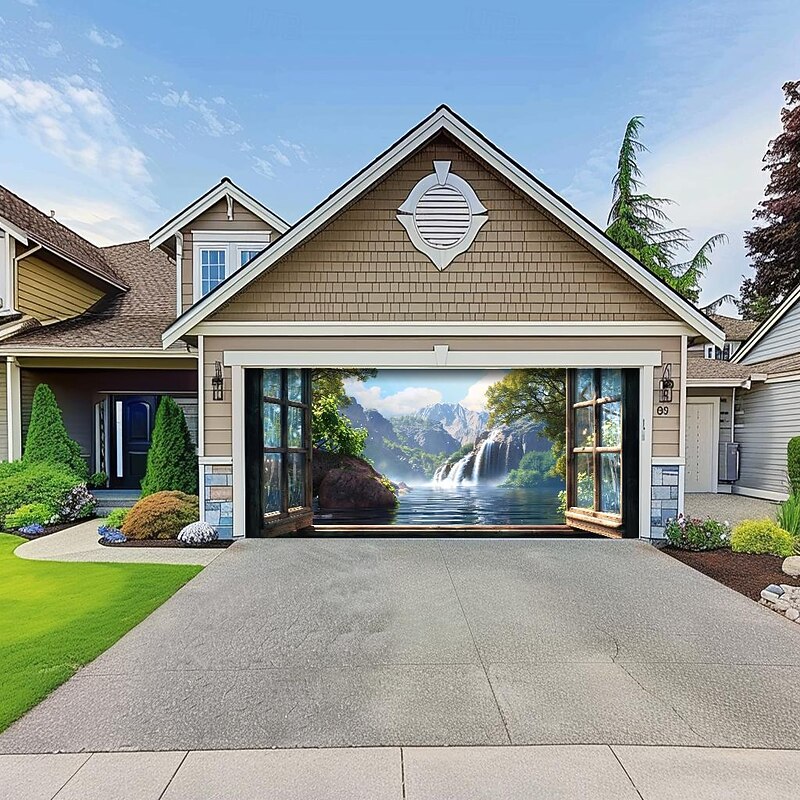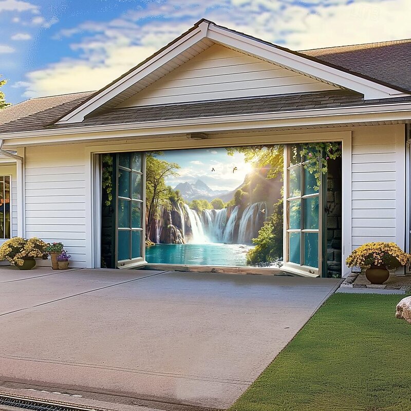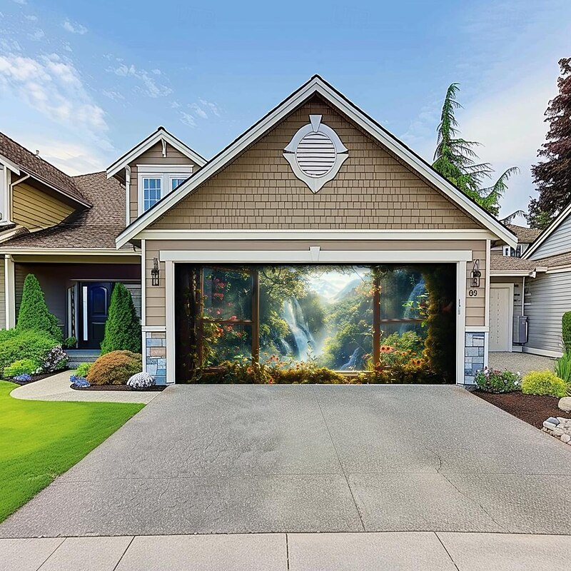 HOT ! Forest Waterfall Outdoor Garage Door Cover Banner Beautiful Large Backdrop Decoration for Outdoor Garage Door Home Wall Decorations Event Party Parade
