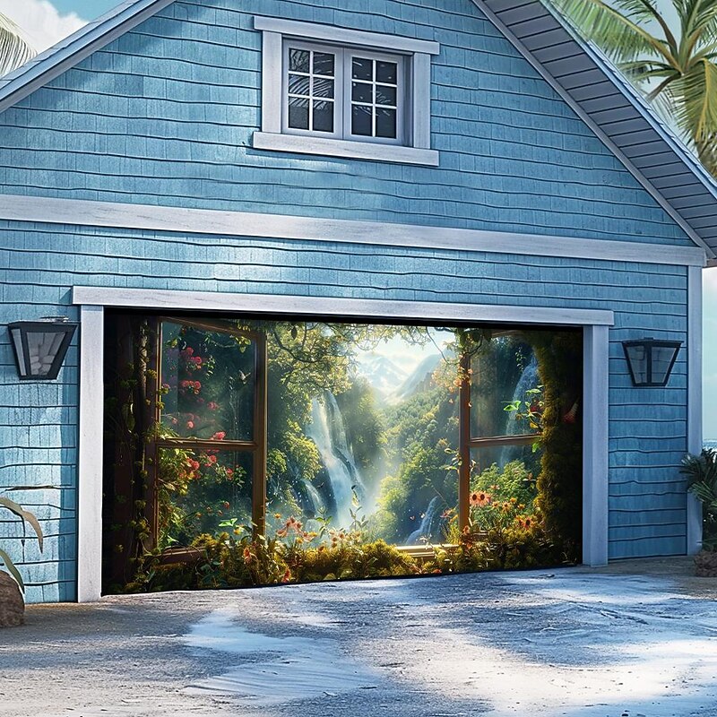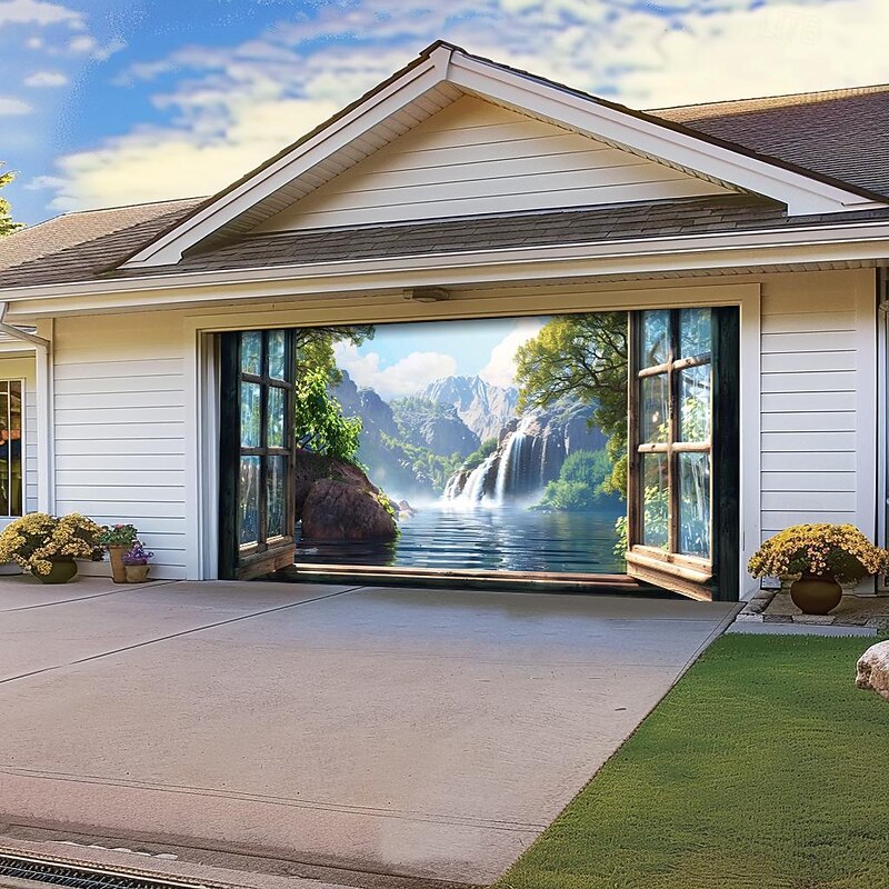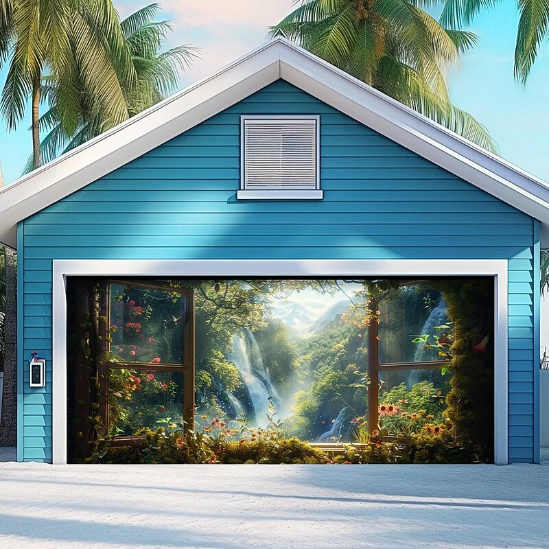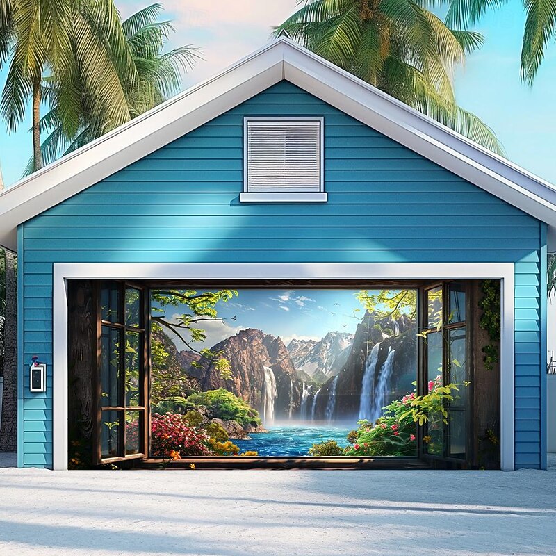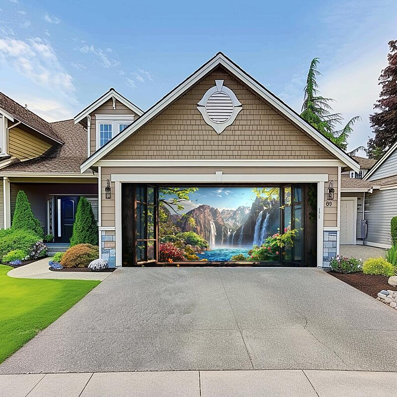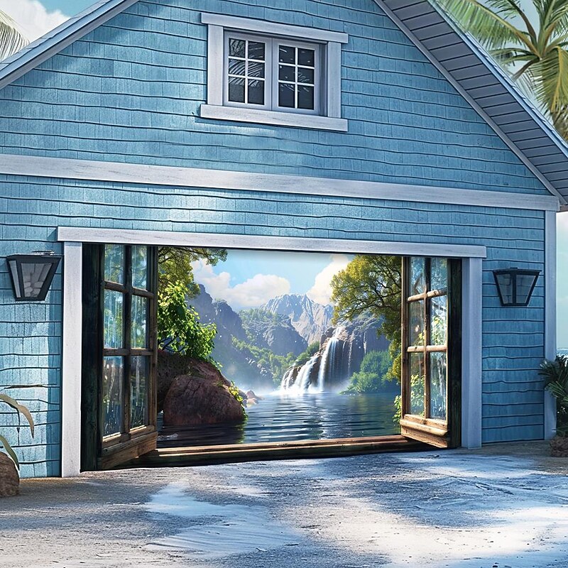 HOT ! Forest Waterfall Outdoor Garage Door Cover Banner Beautiful Large Backdrop Decoration for Outdoor Garage Door Home Wall Decorations Event Party Parade