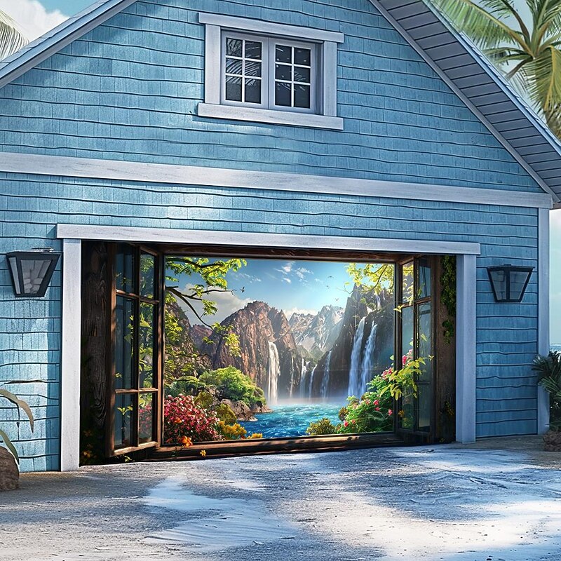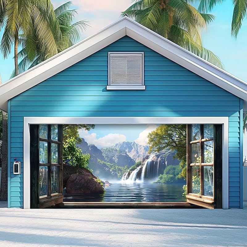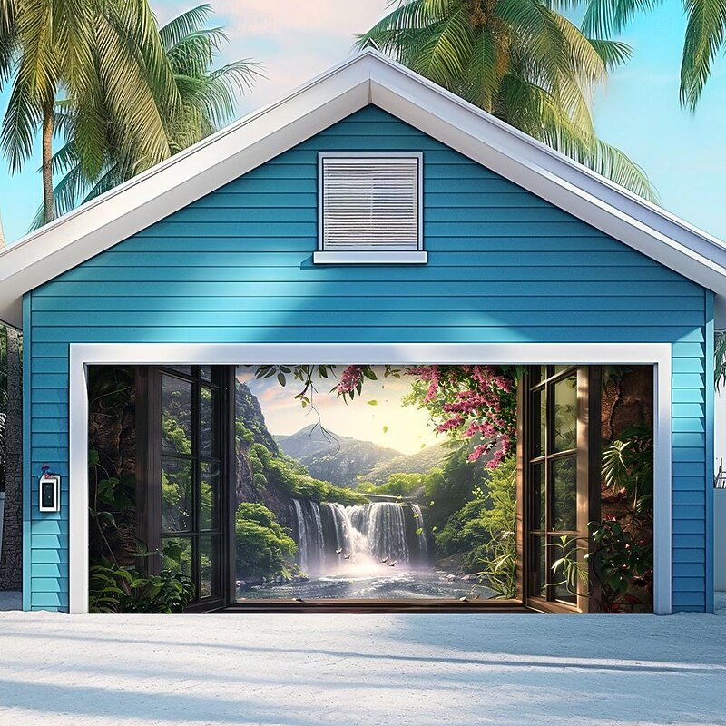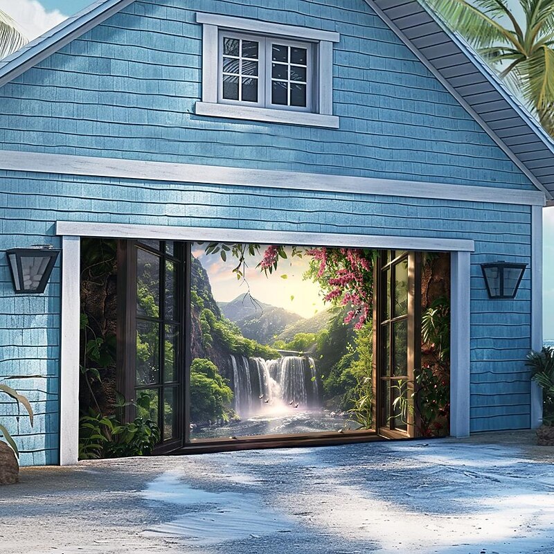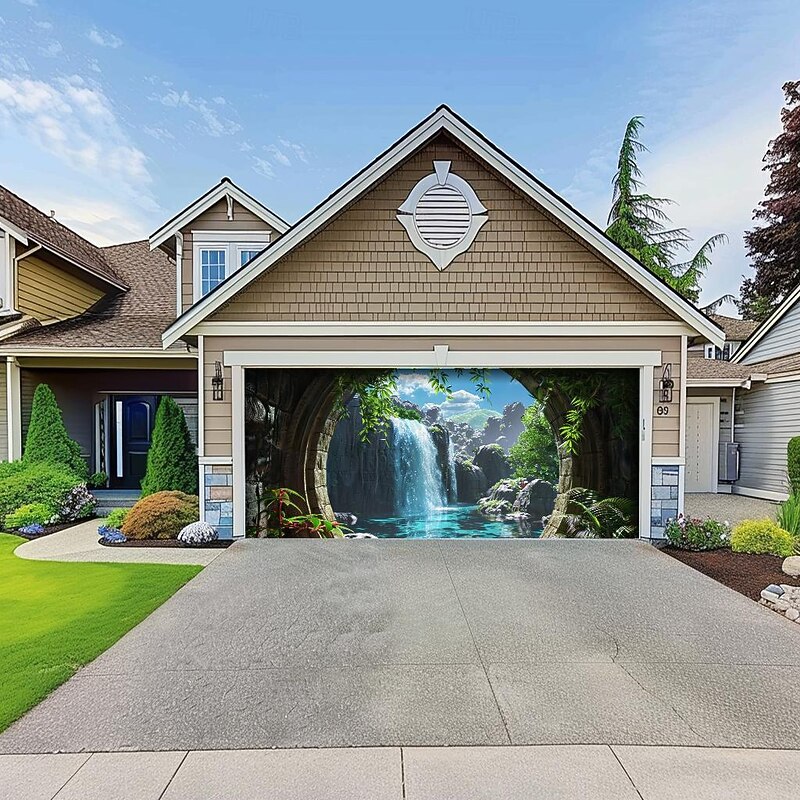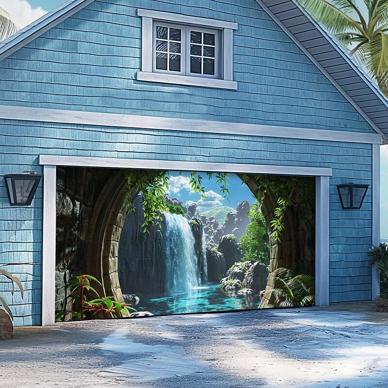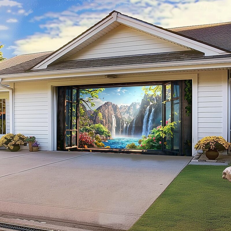 HOT ! Forest Waterfall Outdoor Garage Door Cover Banner Beautiful Large Backdrop Decoration for Outdoor Garage Door Home Wall Decorations Event Party Parade