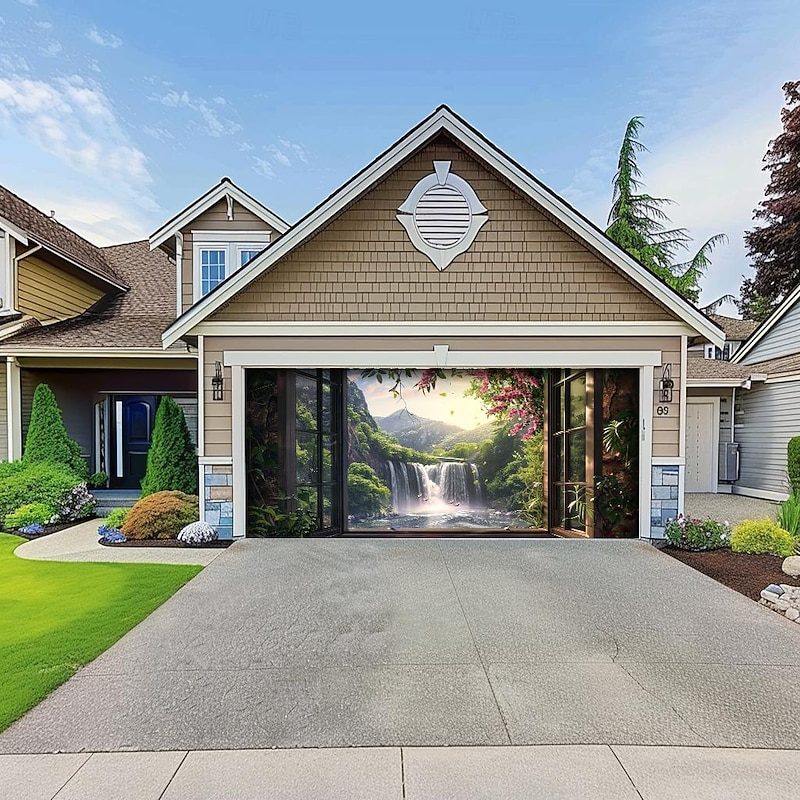 Forest Waterfall Outdoor Garage Door Cover Banner Beautiful Large Backdrop Decoration for Outdoor Garage Door Home Wall Decorations Event Party Parade 29