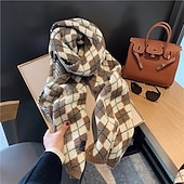 Women's Rectangle Scarf Street Daily Date Red Khaki Scarf Plaid 1