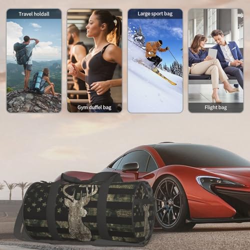 Camo Camouflage American Flag Hunting Deer Foldable Duffle Bag For Women - Workout Bag For Gym Men - Boy Gym Bag - Girls Small Weekender Duffel Bag - Packable Luggage Bag For Travel Sports 5