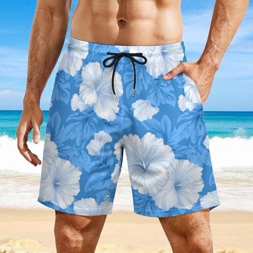 Cute Hibiscus Flower Print Mens Swim Trunks with expedient-Drying Lining Beach Shorts for Outdoor Sports