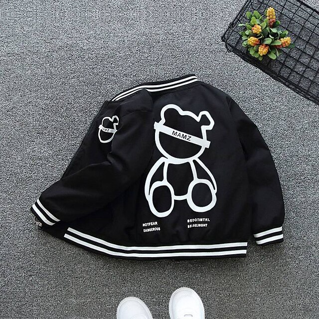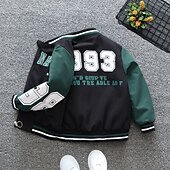 HOT ! Kids Boys' Baseball Jackets Outerwear Animal Color Block Long Sleeve Coat School Cotton Fashion Daily 1993 jacket green white bear coat red Formula jacket apricot color Spring Fall 7-13 Years