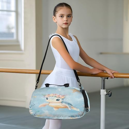 Blue Turtle Starfish Kids Travel Duffel Bag for Boys Girls Overnight Weekend Tote Bag with Shoes Compartment for Gym Sports Dance 6