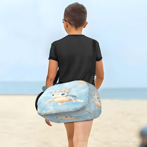 Blue Turtle Starfish Kids Travel Duffel Bag for Boys Girls Overnight Weekend Tote Bag with Shoes Compartment for Gym Sports Dance 5