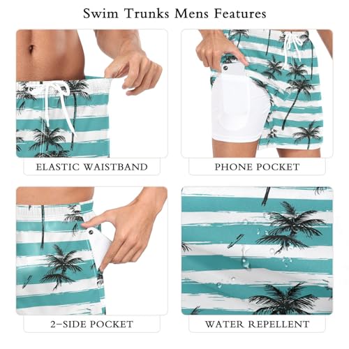 Palm Tree Summer Beach Blue Mens Swimming Shorts Mens Lined Board Swimming Shorts with Liner Quick Dry Elastic S 6