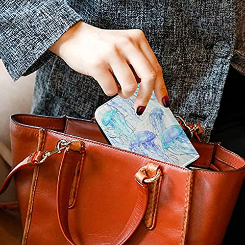 Watercolor Jellyfish Troquoise Blue Grey Credit Card Coin wallet, RFID Blocking Compact Women Leather Card Holder, Key Change Organizer, Zipper Purse Clutch Pouch Pocket 6
