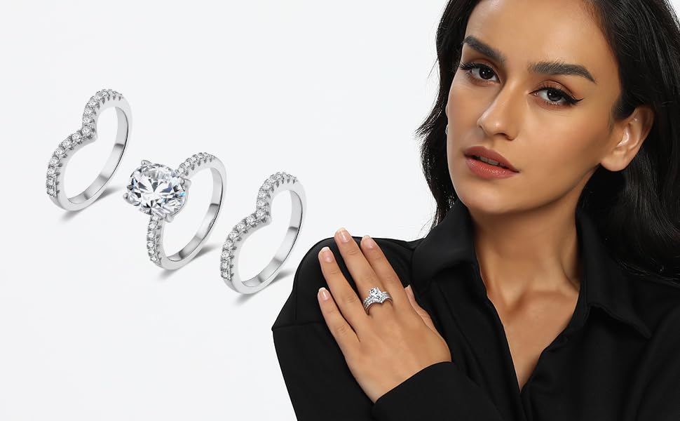 • Beautiful Gift: This cz rings set is a wonderful gift for wedding, engagement, anniversary, Christmas, Valentine's Day, birthday, graduation. You can share it to your friends, family, or yourself.