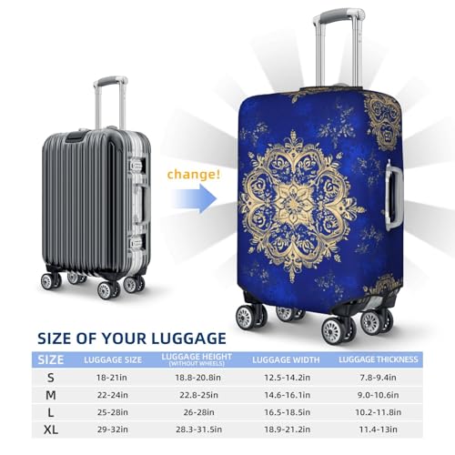 HOT ! Blue Gold Mandala Pattern Elastic Luggage Cover Suitcase Protector, Anti-Scratch Stretchy Washable Dustproof Travel Suitcase Cover Fits 18"-21" Luggage