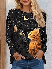 More information about Halloween Women's T shirt Black Cat Long Sleeve Crew Neck Long Sleeve Tunic Cat Casual Regular Tops Daily Print Black Spring Fall Prefall