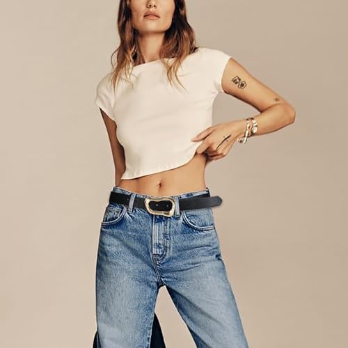 Black Belt for Women Stylish Gold Buckle Fashion Leather Waist Belt Perfect for Jeans and Dresses 6