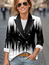 More information about Women's Blazer Comfortable Breathable Buttons Print Fashion Casual Geometric Office Street Casual Daily Wear Double Breasted Short Notch Lapel Regular Fit Long Sleeve Outerwear Black Pink Red Spring