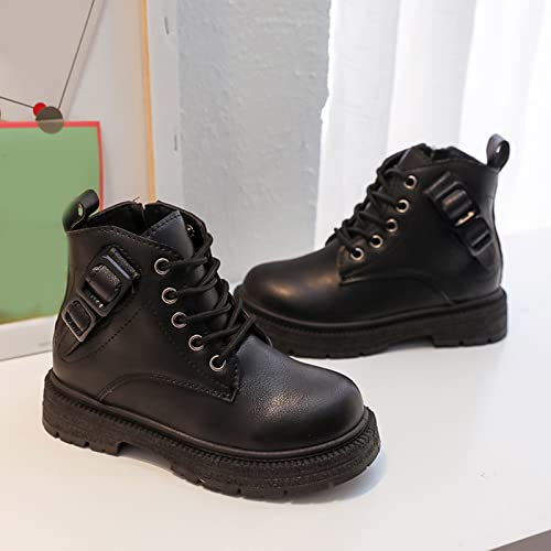 Fashion Autumn and Winter Girls Boots Thick Bottom Flat Bottom Round Toe Non Slip Solid Color Girl Winter Boot (Black, 9-9.5 Years Big Kids) 6