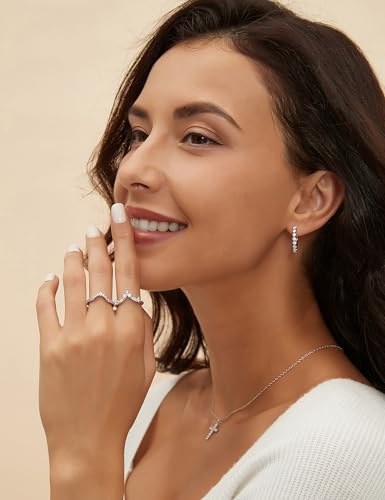 Mameloly Wedding Bands for Women Pear & Round Shaped Stackable Cubic Zirconia Half Eternity CZ Curved Engagement Rings for Her Size 3-12 5