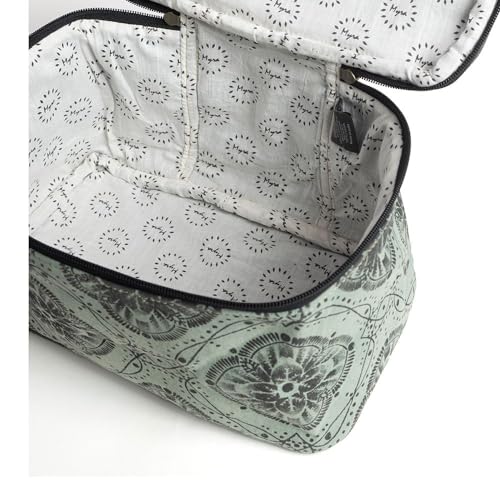 • STYLISH ACCESSORY - This scrumptious vintage-inspired toiletries case features a delightful exterior of woven canvas. The eye-catching motif features a graceful medallion design in lovely muted colors.