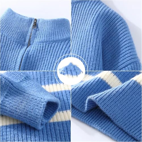 Men's Chic Handsome Zippers Sweater Warm Men Stripe Pattern Stand Collar Size Age Reduction Sweater 4