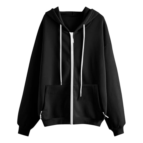 HOT ! Womens Drawstring Zip Up Hoodies Oversized Sweatshirts Fall Fashion Outfits Casual Jackets Winter Clothes