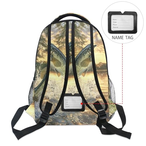 Bass Fish Sea Backpack Laptop Tablet Travel Elementary School Bags with Name Tag for Boys and Girls 4