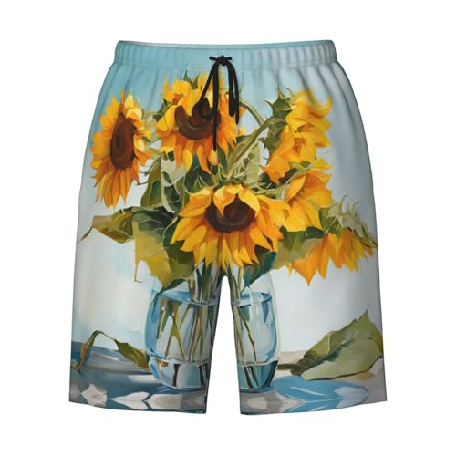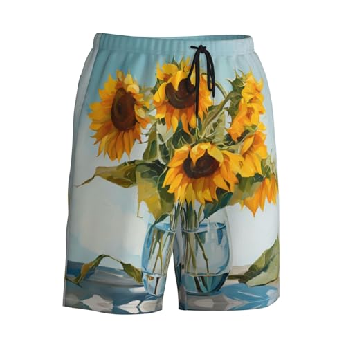 HOT ! Sunflower Print Print Men's Beach Pants Lightweight Quick-Dry Swim Pants with Mesh Lining for Men