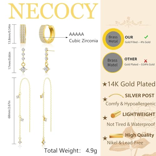 • [ LIGHTWEIGHT DESIGN ] : These elegant and simple gold chain earrings set for women are designed to be worn all day long without weighing down your ears! Refer to the provided picture for size and weight information on the women's earrings set