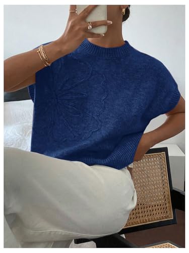 • MATERIAL: Womens cap sleeve flower sweater vest made with soft, lightweight, breathable, stretchy knit fabric, comfy and trendy to wear