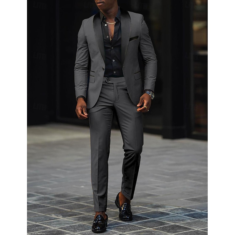 Men's Wedding Party Suits Shawl Lapel Notch Black Pink Fashion Daily Solid Colored Tailored Fit 2 Piece Single Breasted One-button 17