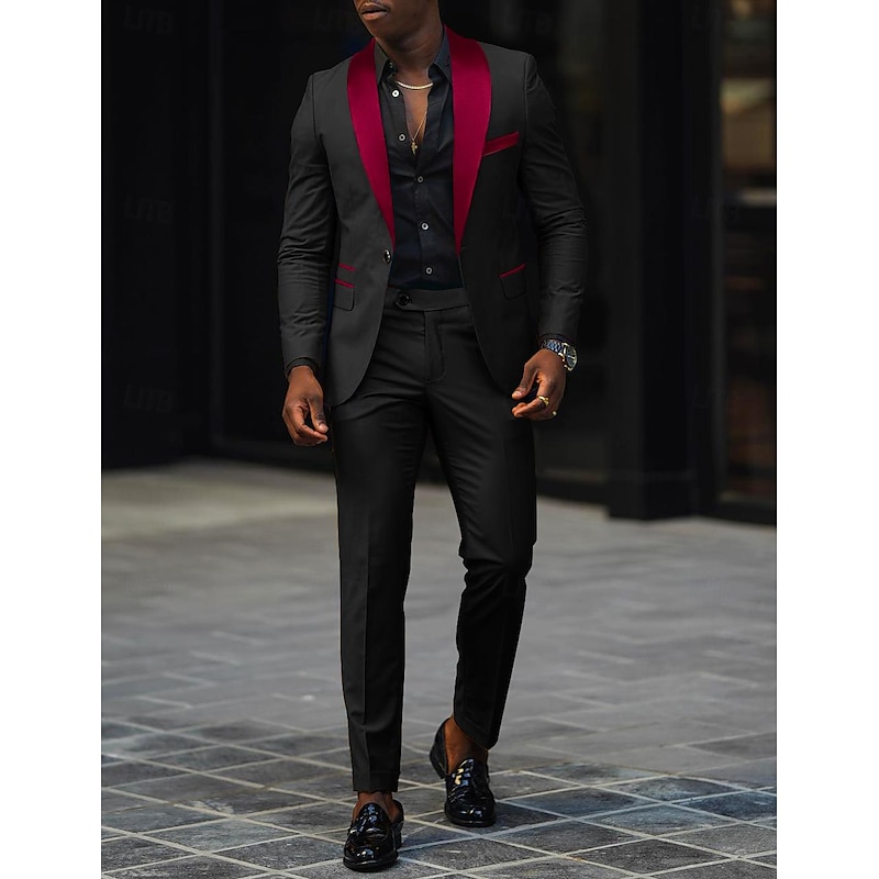 HOT ! Men's Wedding Party Suits Shawl Lapel Notch Black Pink Fashion Daily Solid Colored Tailored Fit 2 Piece Single Breasted One-button