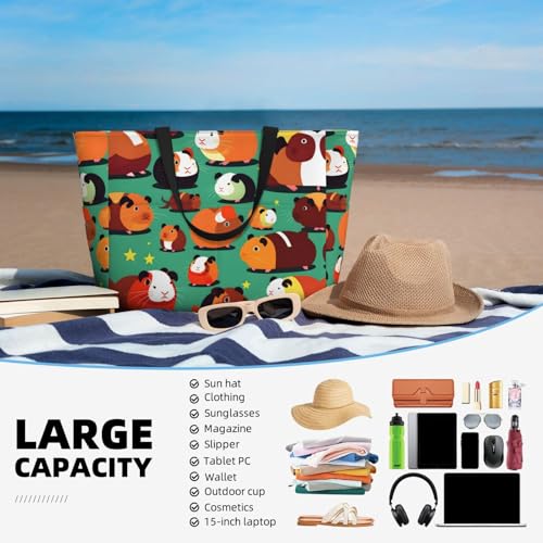 Fabric type: PolyesterCare instructions: Machine WashKeep Items Safe From Sand And Water: This Cute Guinea Pig Beach Bag For Women Made Of Machine-Washable Polyester Fabric, Ensures Your Clothes, Phones, Electronics And Other Beach Essentials Stay Dry And Sand-Free. Effortlessly Switch To Clean Attire Post-Beach Fun.Family-Sized And Organized, Eliminate Clutter: With Dimensions Of 15L X 17.7H X 6.7W, This Cute Guinea Pig Beach Bags For Women Vacation Easily Holds A Family'S Beach Accessories, Yet Still Keeps It Lightweight. It Features 7 Pockets With This Beach Bag You Can Bring Everything You Needed.Multiple Pockets: Our Cute Guinea Pig Beach Bag Has Multiple Pockets, Making Item Classification More Convenient! There Are Two Large Pockets On Both Sides Of The Outer Side, And A Zippered Pocket On The Inner Side. The Zippered Pocket On The Inner Side Can Hold Valuable Items Such As Phones, Wallets, Etc.Secure Top Zipper, Keep Items Clean: The Cute Guinea Pig Tote Bag'S Top Zipper Holds Both Straps Together, Offering Dual Protection Against Sand Intrusion And Spills. It Keeps Your Belongings Safe And Clean, Making It An Essential Beach Companion.Versatile Carrying Options Based On Needs: Sling The Cute Guinea Pig Beach Bag Tote Over The Shoulder For Hands Free, And Handheld For Heavy Items. cushy Webbing Straps Make Transport Easy, Whether You'Re Heading To The Beach Or Using The Cute Guinea Pig Bag For Shopping Or As A Swim Bag, Pool Bag. Perfect for everyday use. excellent materials and excellent craftsmanship ensure long-lasting durability.