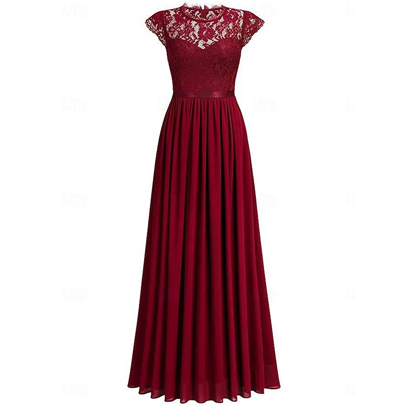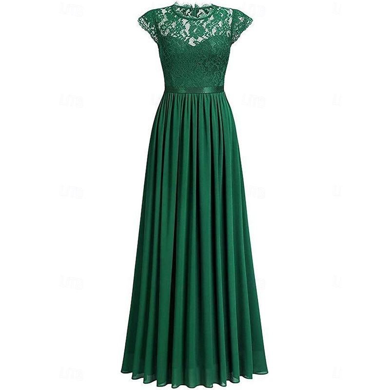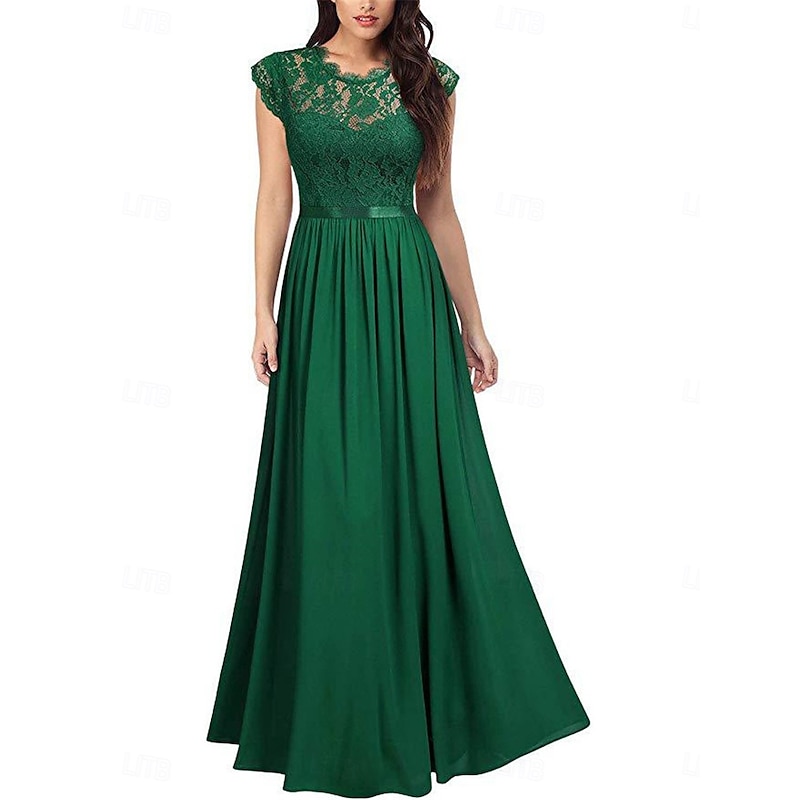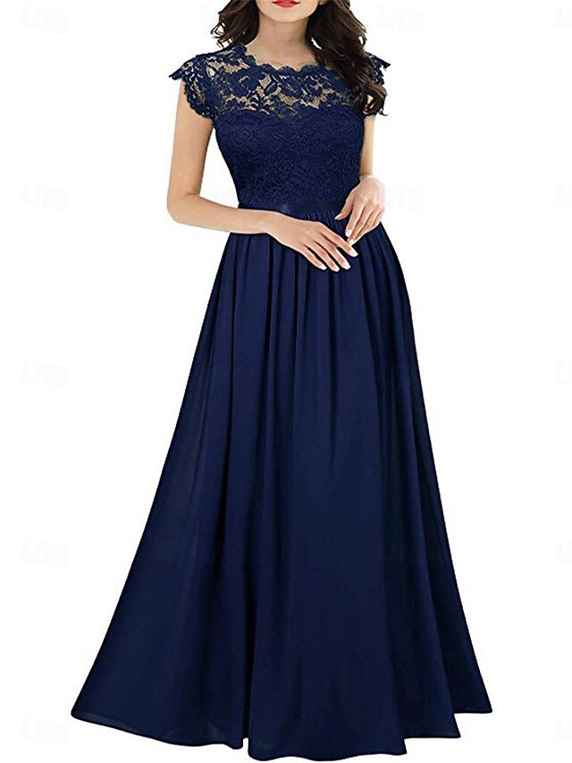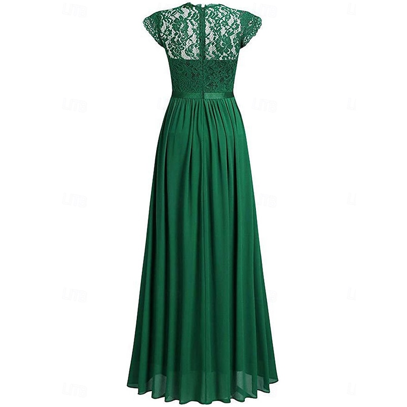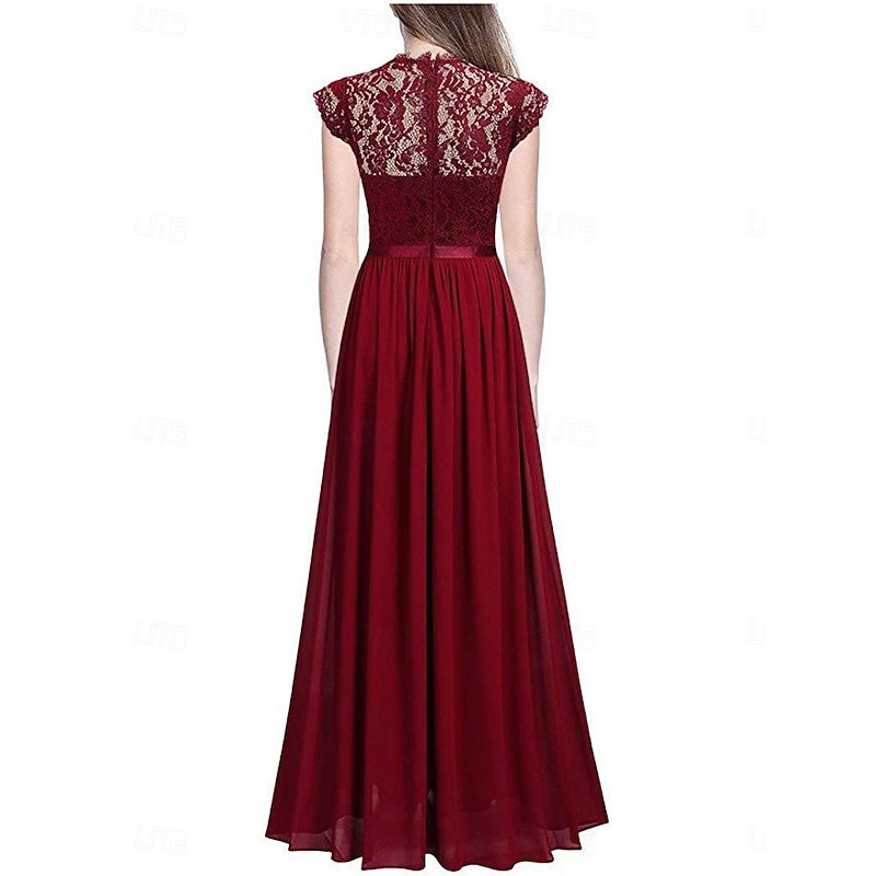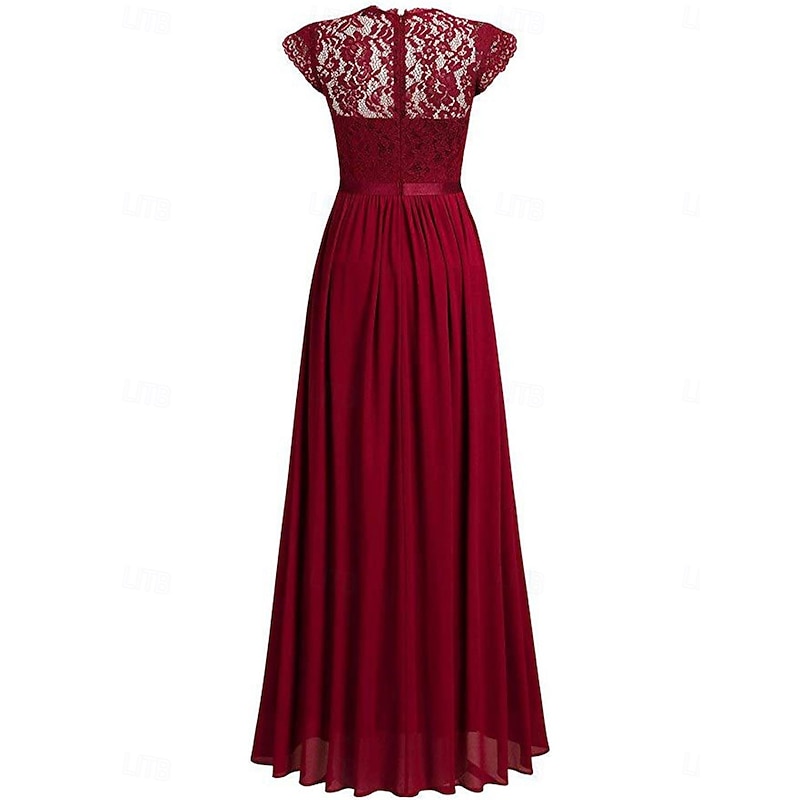 More information about Women's Long Dress Maxi Dress Lace Dress Cocktail Dress Wedding Guest Dress Chiffon Elegant Fashion Modern Outdoor Cocktail Party Regular Fit Plain Short Sleeve Crew Neck Black Wine Navy Blue Green