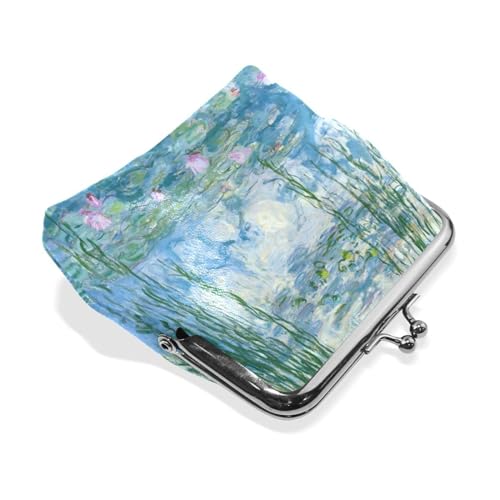 WIHVE PU Leather Coin Purse Monet Water Lilies Willow Floral Wallet Bag with Kiss Lock 1