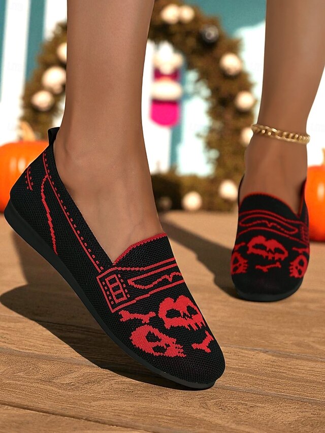 $19.99 - Women's Black and Red Round Toe Knit Skull Flats - Halloween Gothic Slip-On Shoes for Fall Parties and Casual Wear 2025. Shop for cheap Shoes For Women online? Buy at lightinthebox.com on sale today!