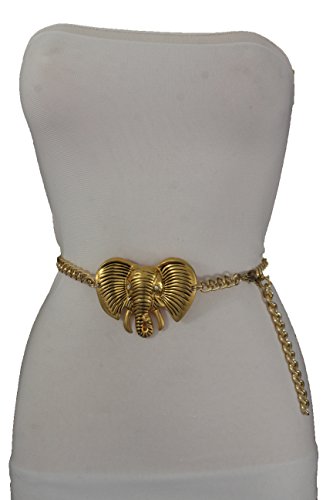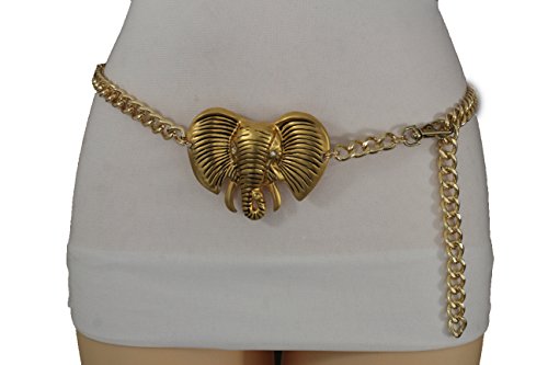 More information about Women's Fashion Chain Belt - High Hip Waist with African Elephant Charm Plus Size M L XL, Gold