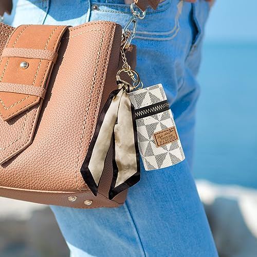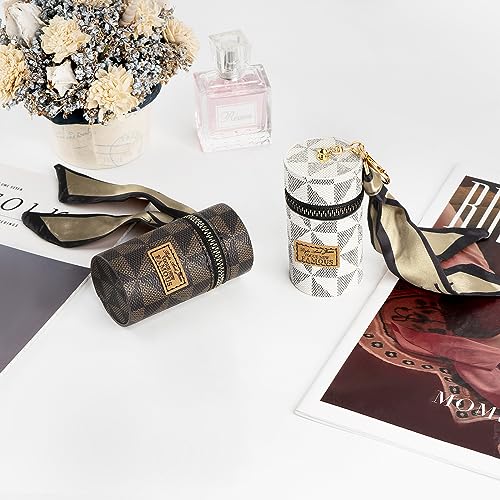 sought-after ! 2 Pack Lipstick Case, Leather Lip Gloss Bag for Purse, Travel Lipstick Organizer with Keychain for Women (Brown, White)