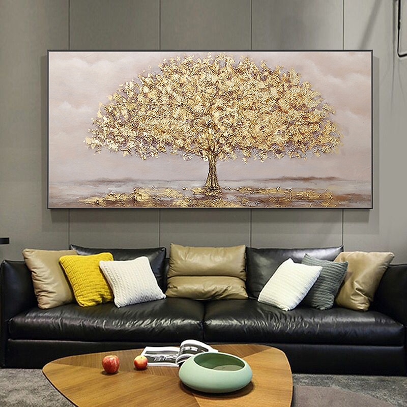 Mintura Handmade Golden Tree Landscape Oil Paintings On Canvas Wall Art Decoration Modern Abstract Pictures For Home Decor Rolled Frameless Unstretched Painting 1