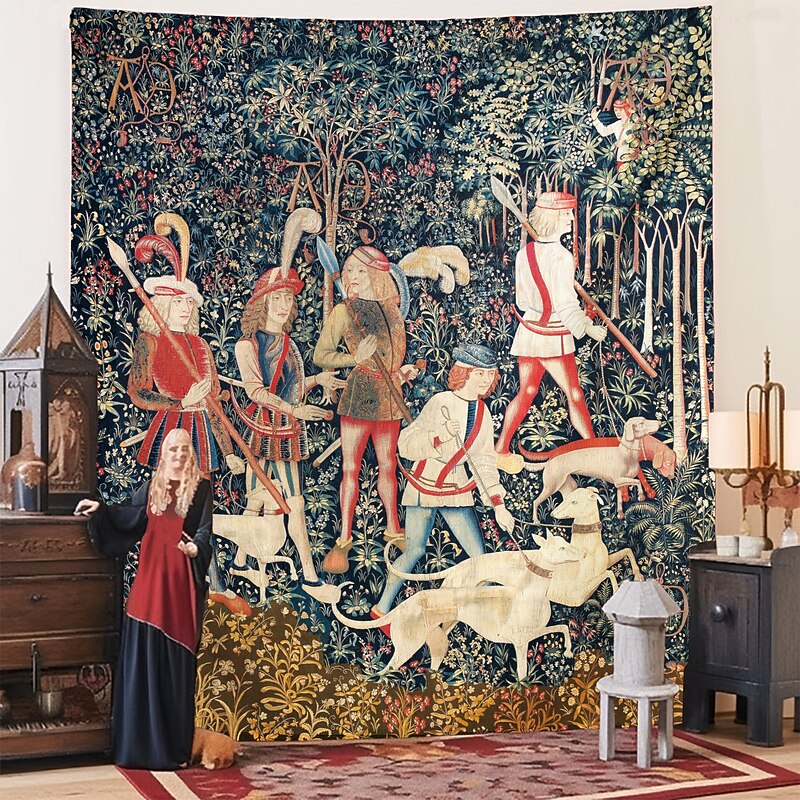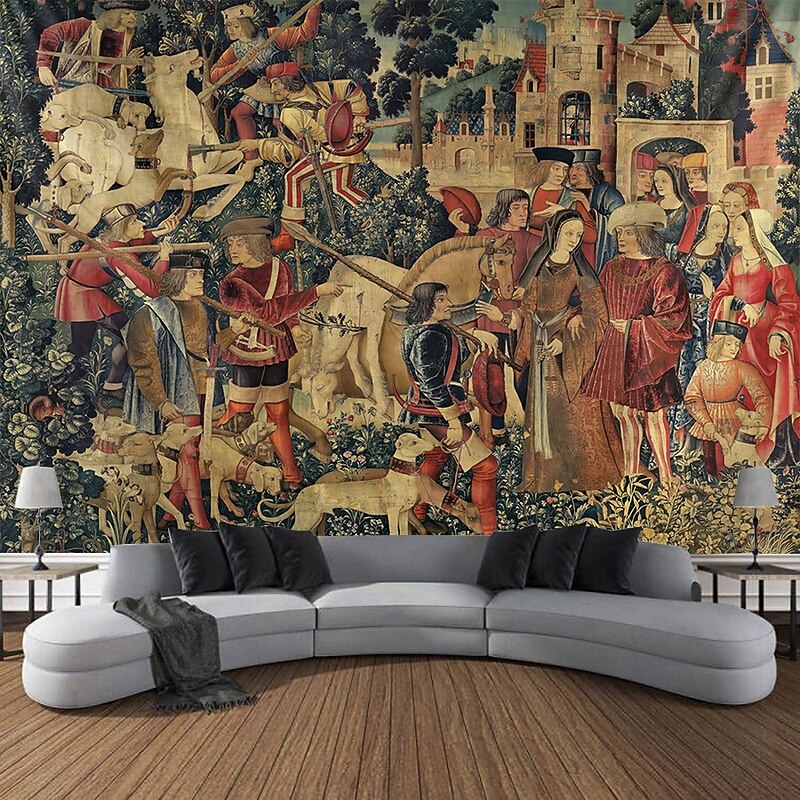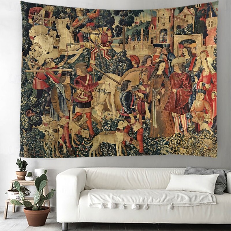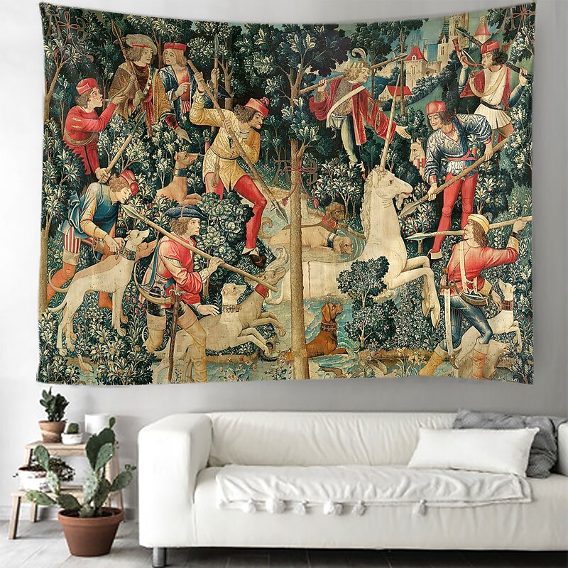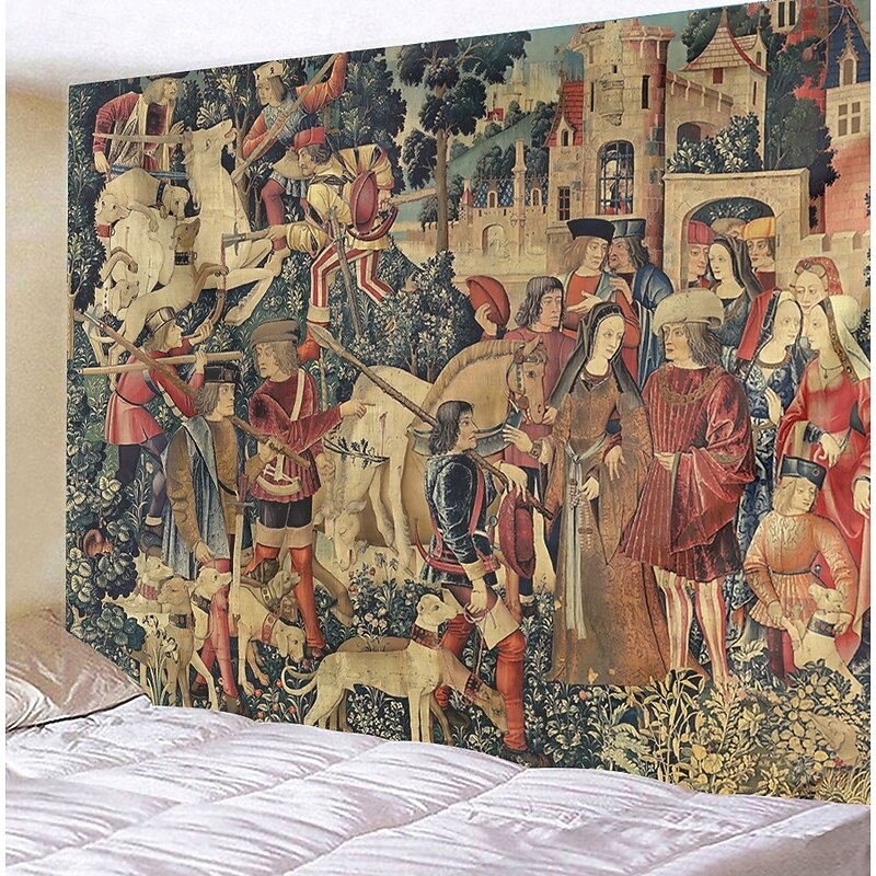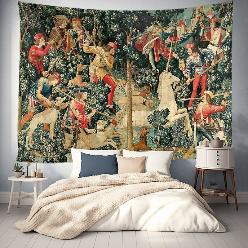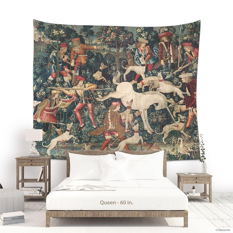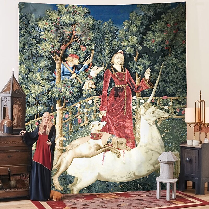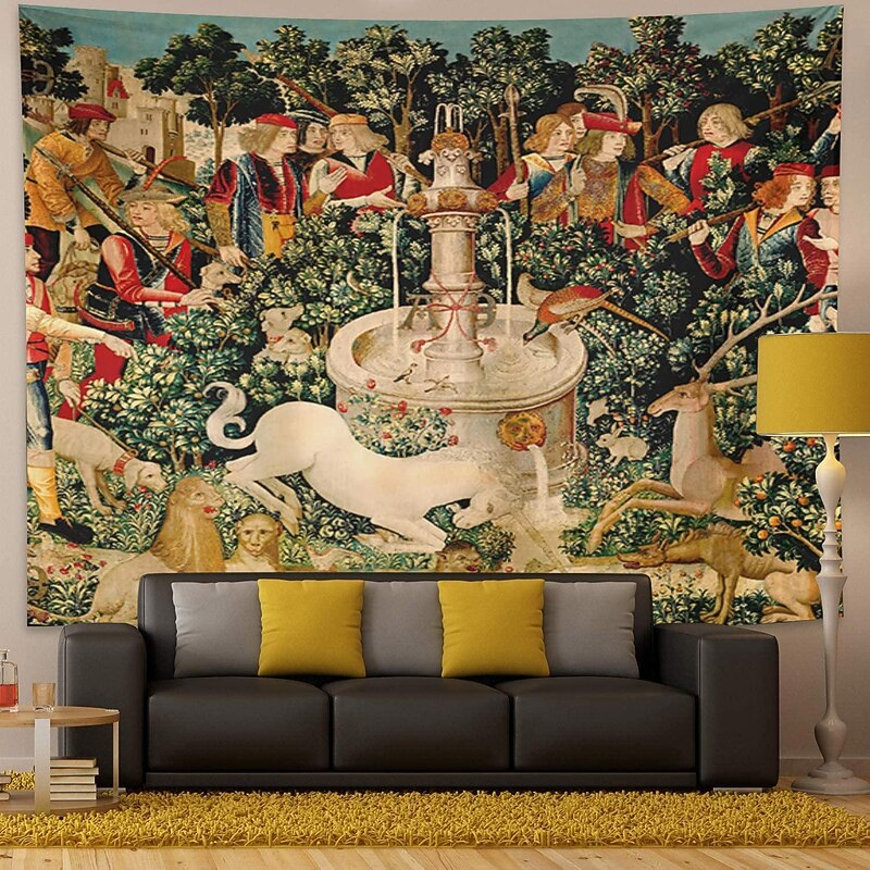 HOT ! Unicorn Medieval Tapestry Middle Age Tapestry Wall Art Large Mural Decor Photograph Backdrop Blanket Curtain Home Bedroom Living Room Decoration